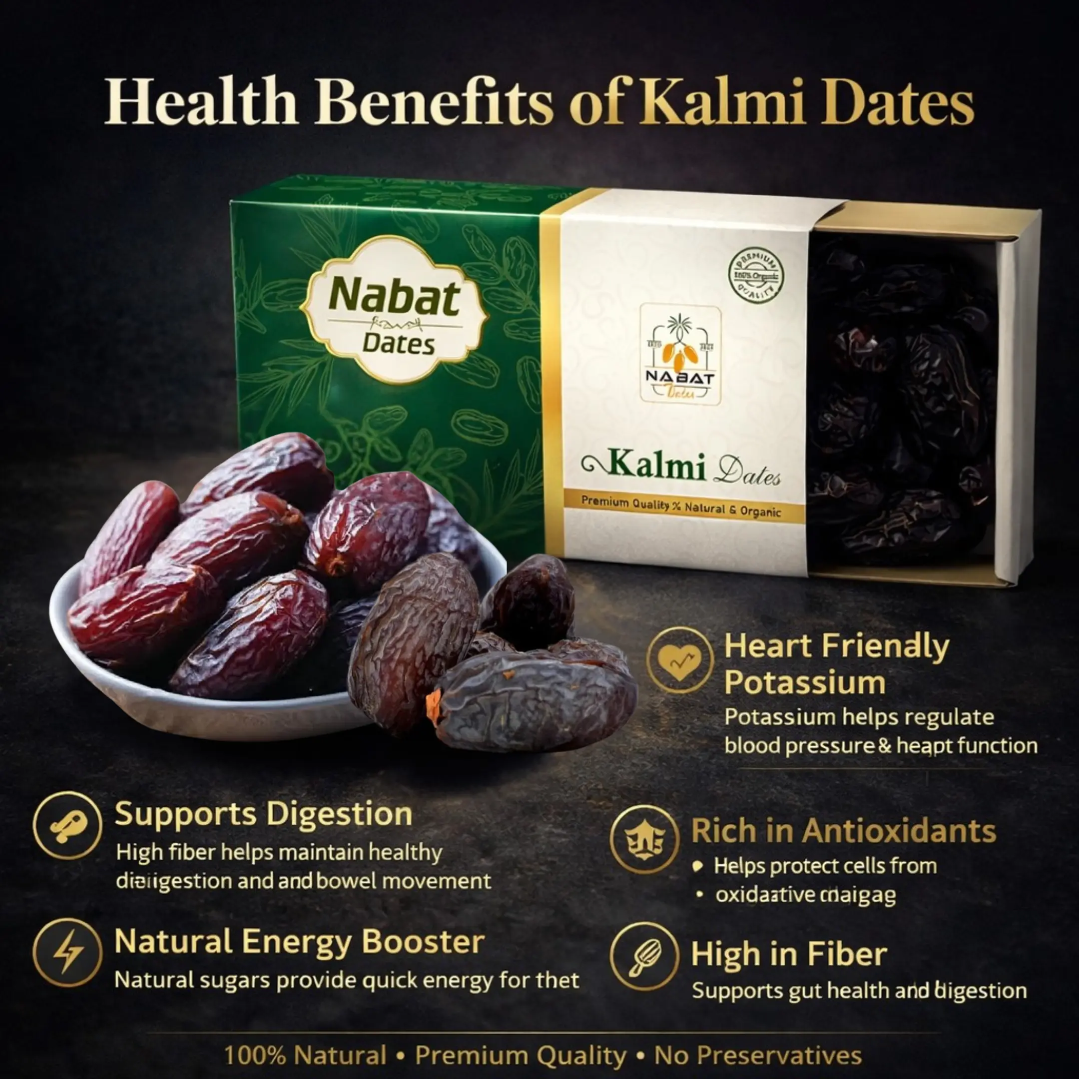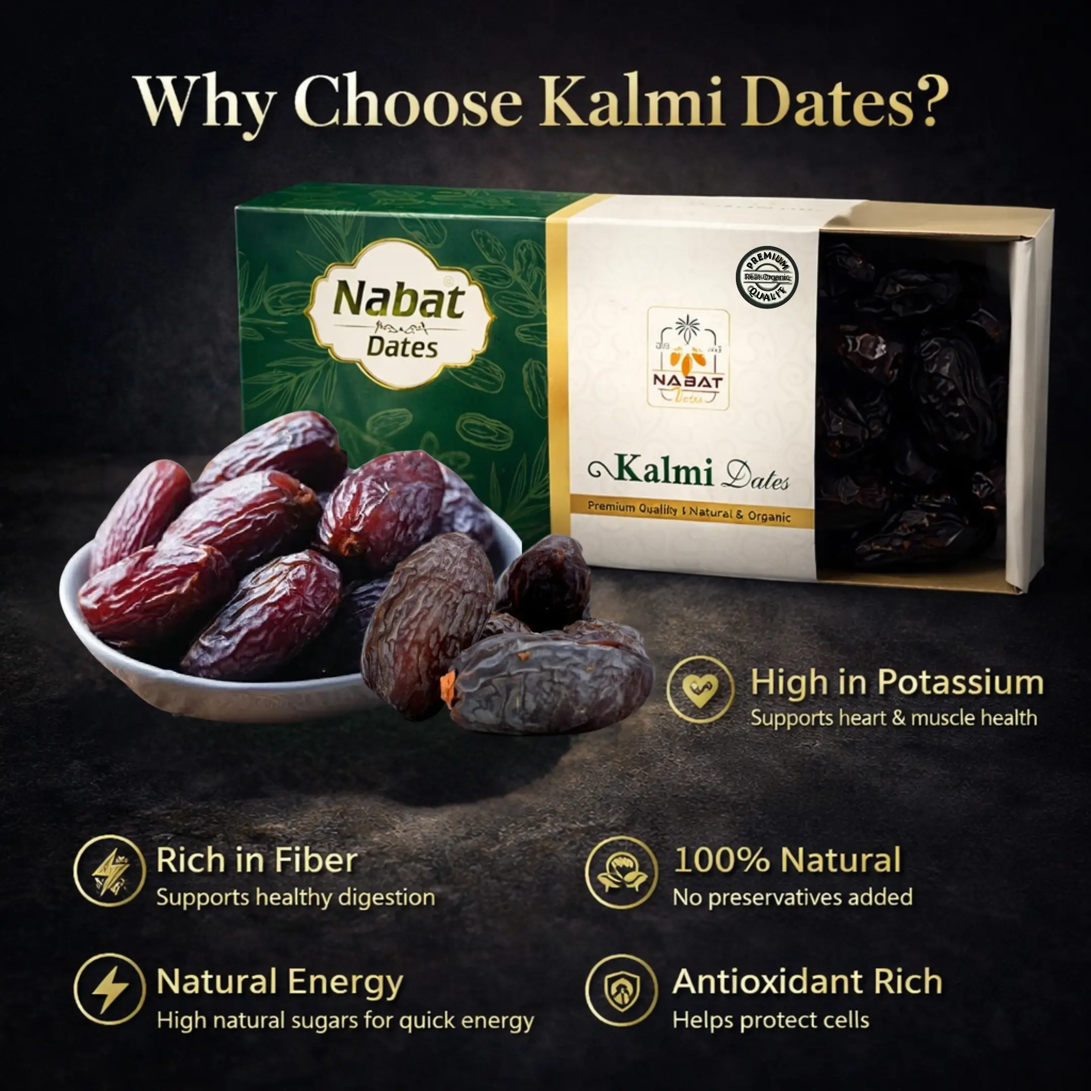 Nabat Kalmi Dates are known for their rich caramel-like sweetness and chewy texture. Grown in the fertile lands of Saudi Arabia, these dates are a favorite for everyday snacking and gifting.