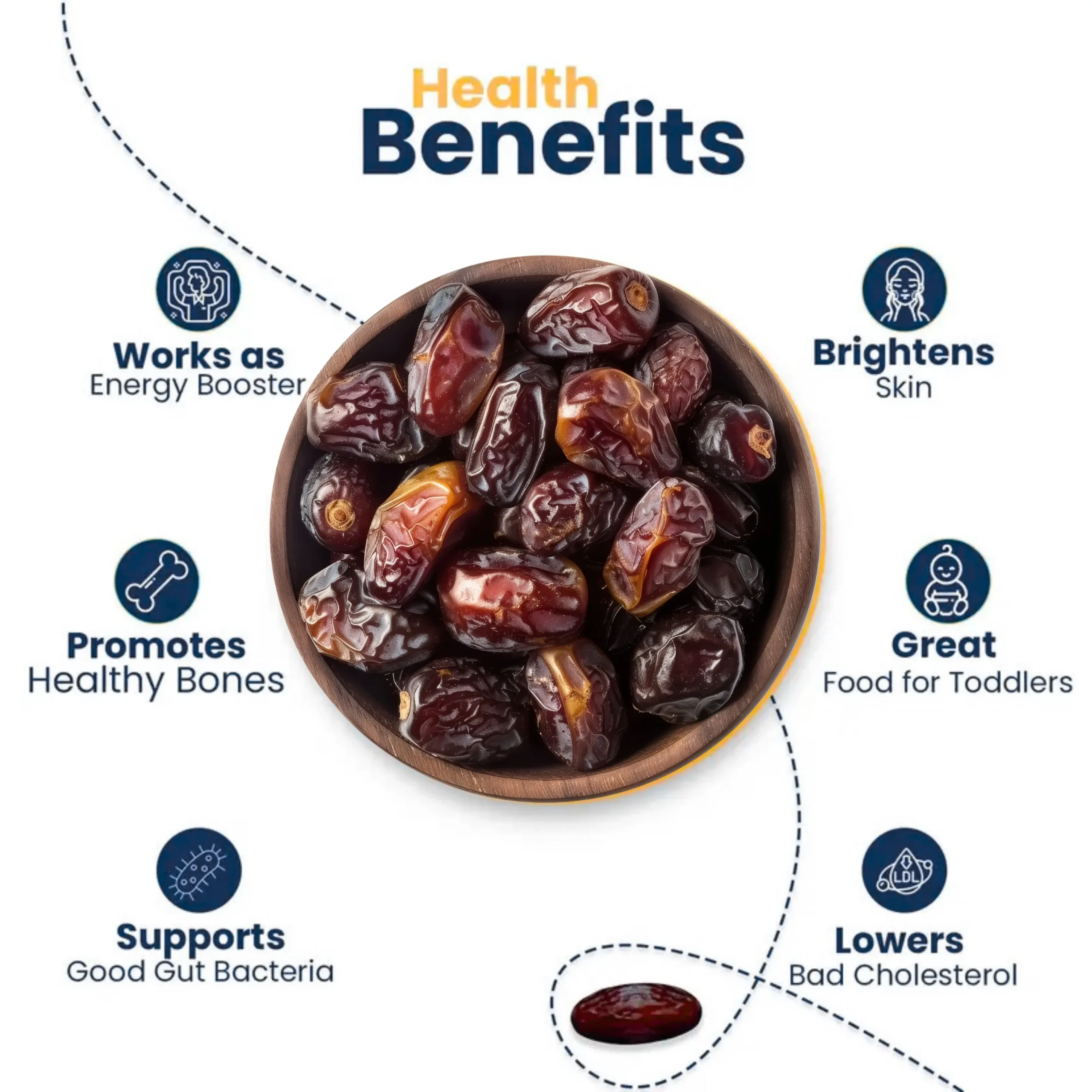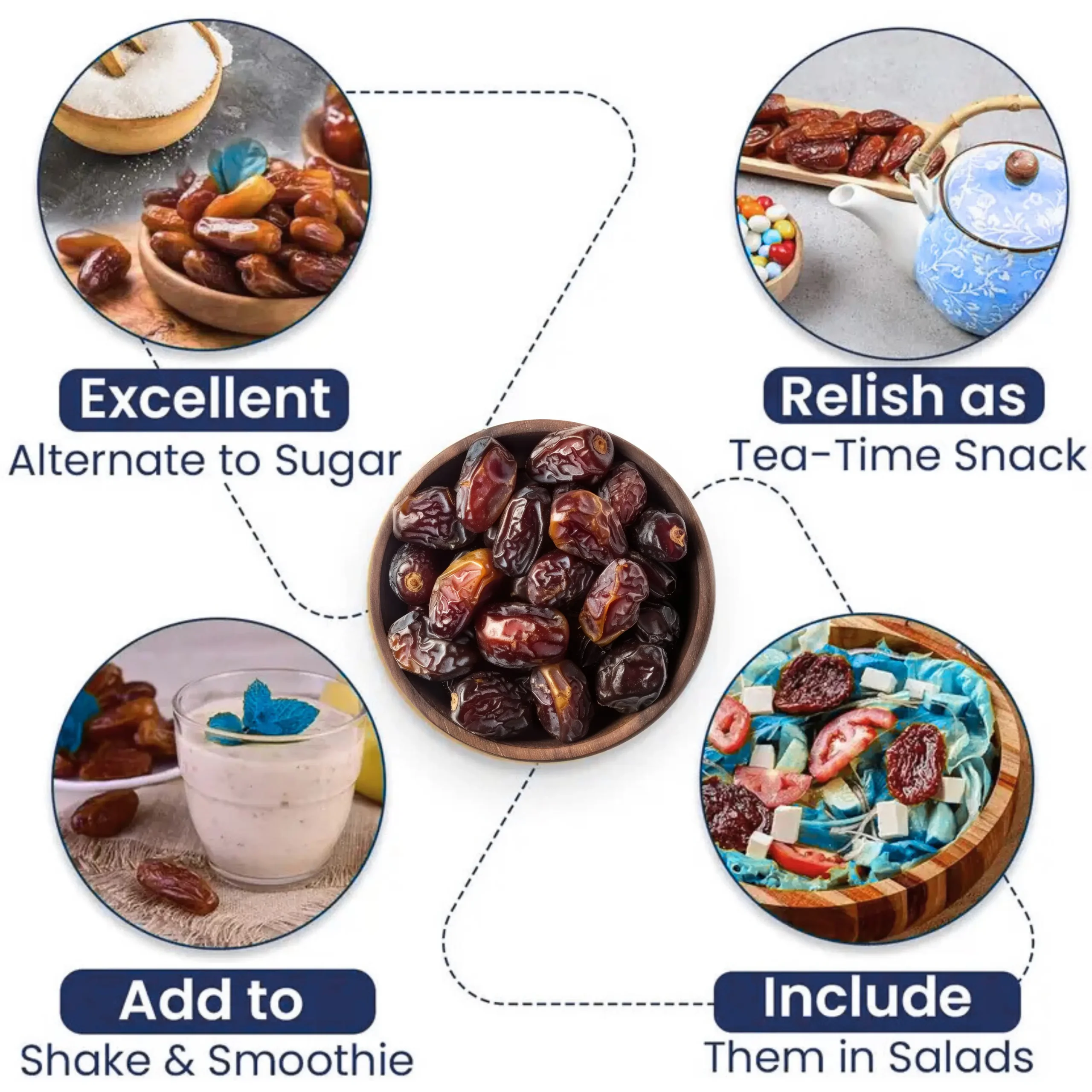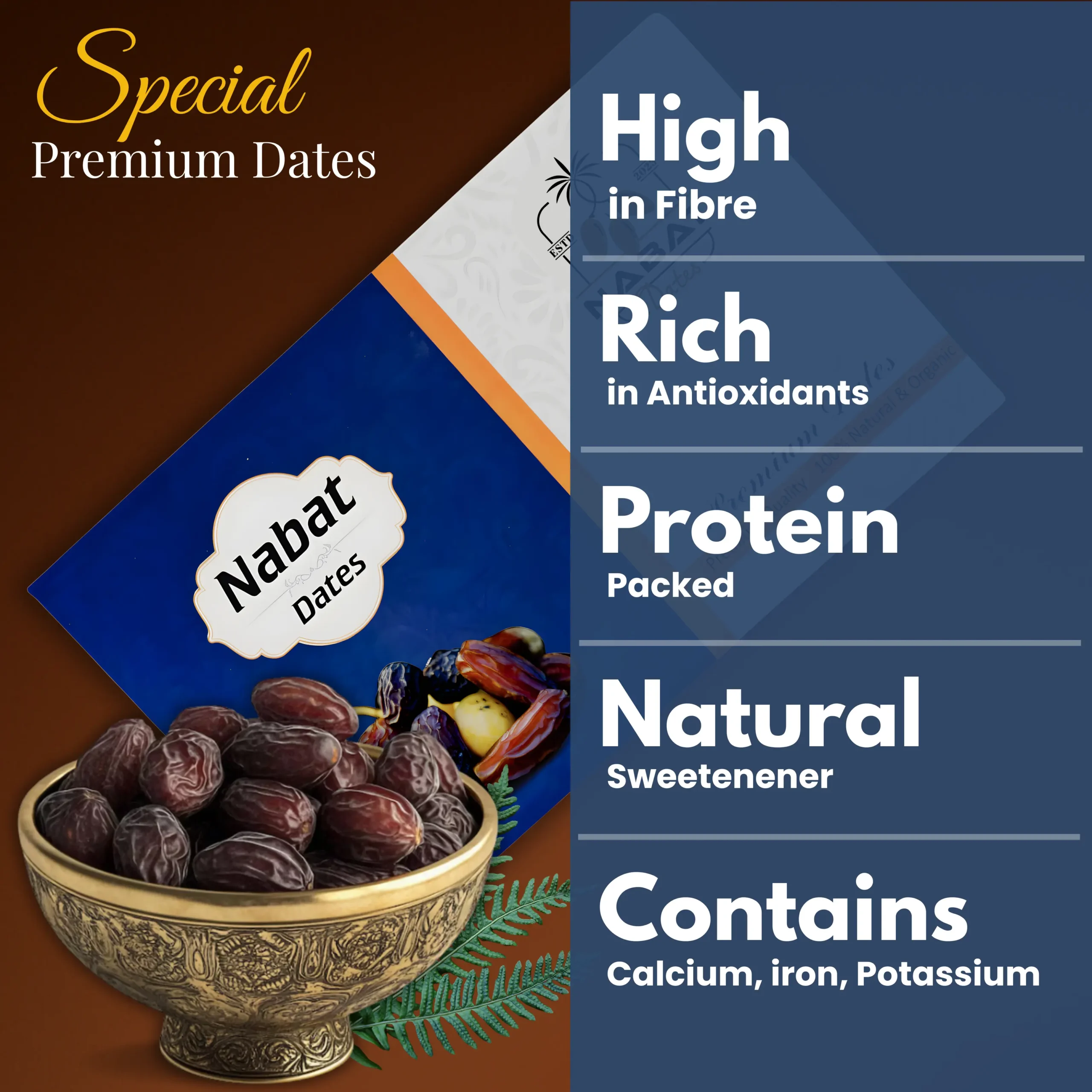 Nabat Kalmi Dates are known for their rich caramel-like sweetness and chewy texture. Grown in the fertile lands of Saudi Arabia, these dates are a favorite for everyday snacking and gifting.