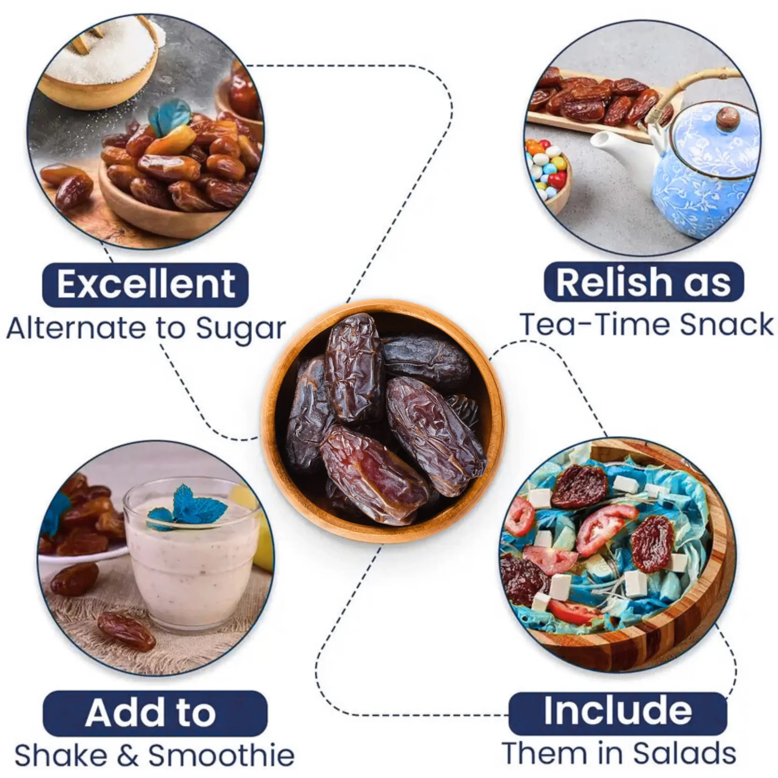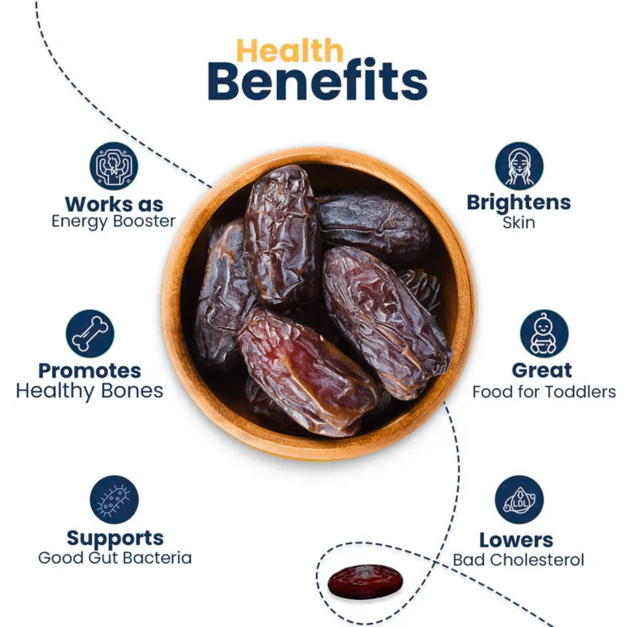 Enjoy the royal sweetness of Medjool Dates in this 1kg pack. Soft, juicy, and naturally sweet, perfect for snacking, gifting, or family consumption.